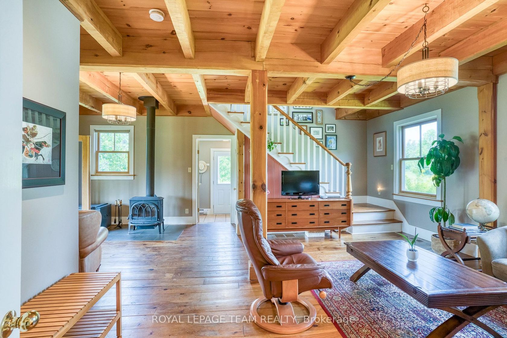 ONE OF A KIND WITH INSTANT CURB APPEAL SET ON 94 ACRES!! Originally an 1800s farmhouse which was dismantled & meticulously rebuilt + an addition in the 1990s. You will be impressed with the charm and character plus the quality upgrades. The handy mudroom/foyer with tile floor is the ideal place to greet family & friends. Recently updated kitchen is complete with quartz counters and tile floors + a sunny window overlooking your backyard. Both the dining room & living room have wide plank floors & beamed ceilings. From the living room you have direct access to your wrap around veranda. The perfect place to have your morning coffee & listen to the birds!! The family room showcases an exposed log wall, wide plank floors & a cozy wood stove. From the family room you have direct access to your sun room offering a peaceful relaxing view overlooking your back fields. A handy two-piece bathroom is conveniently located on the main floor. Upstairs you will find three spacious bedrooms with pine floors The primary bedroom offers a walk-in closet. With Fiber Internet & the office area it is an ideal place for those that work from home. Modern 5-piece bathroom with double sinks, a soaker tub & a separate shower stall. Excellent out bldgs including two separate detached garages both offering extra storage space & room for your special projects & hobbies. Oh and don't forget the fresh eggs from your own chicken coop!! The acreage offers the perfect combination of open fields, forest and even a pond next to the house! You will have year-round enjoyment with hiking & 4-wheeling in the summer, cross-country skiing, snowshoeing & snowmobiling in the winter. Recent upgrades roof, furnace and wood stove 2016, windows 2018, two doors 2019, kitchen and both bathrooms 2021, veranda 2023. Utilities hydro approx $190/mo, propane approx $190/mo, wood 3 chords/yr. Located on a peaceful country road with easy access. 15 min to Almonte, 1 hr to downtown Ottawa, min to Clayton General Store. Check