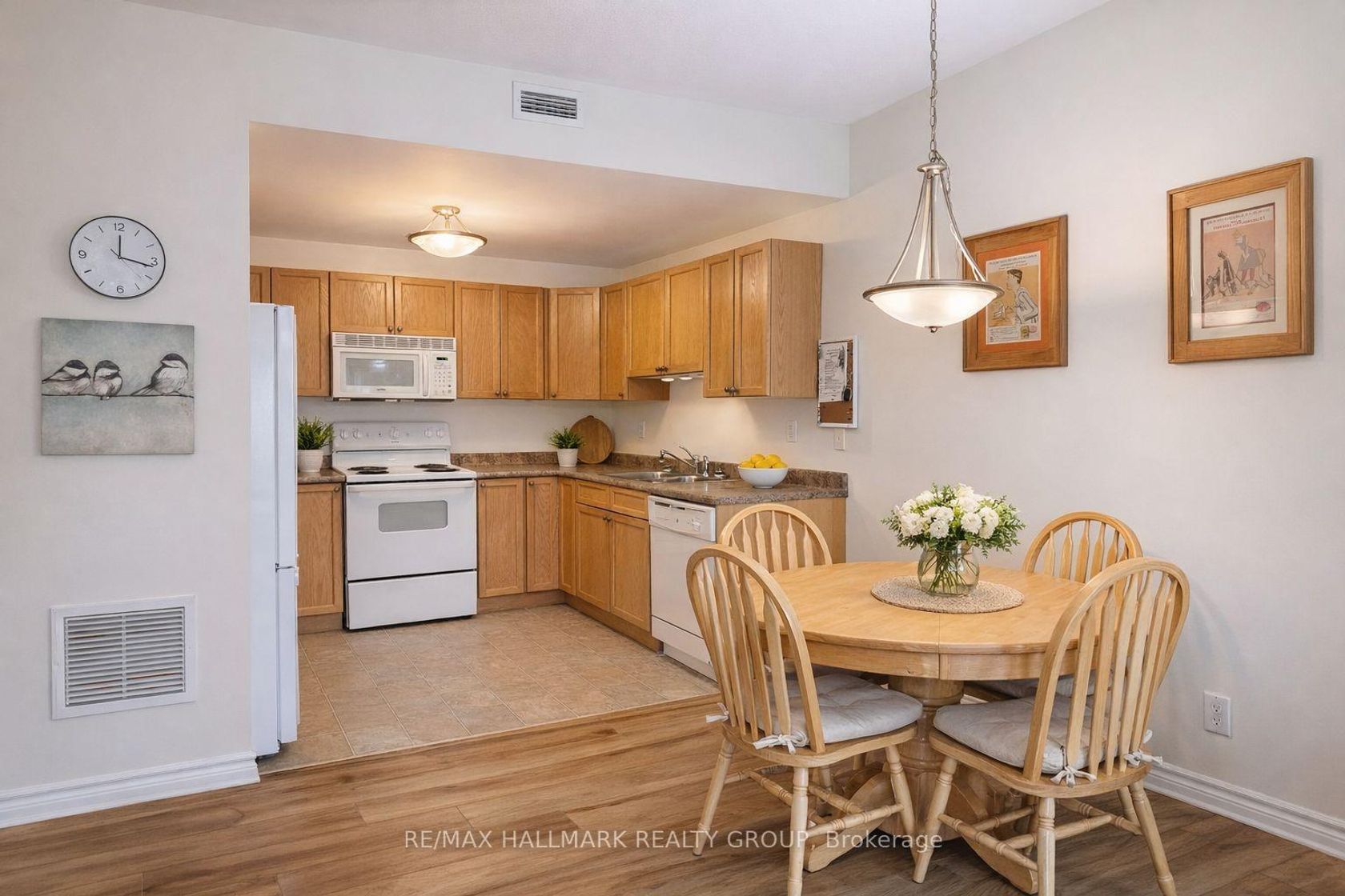 Welcome to easy, low-maintenance living in the heart of Perth! This bright and inviting 2-bedroom condo offers exceptional natural light and a functional open-concept layout, perfect for comfortable everyday living.The kitchen features beautiful custom maple cabinetry, ample counter space, and great storage, seamlessly flowing into a spacious living area-ideal for both relaxing and entertaining. You'll find two nicely sized bedrooms, a large 4-piece bathroom, and the added bonus of in-unit laundry. The utility room is thoughtfully designed with spacious built-in storage, offering the perfect solution for bulk purchases and additional household organization.This well-maintained unit is truly move-in ready, with thoughtful updates including vinyl flooring in the living room and hallway (January 2025), a furnace (2022) and owned hot water tank (2022).Located in a reputable building known for its welcoming and friendly community, the common areas have been recently refreshed with new flooring and fresh paint. Residents enjoy access to a party room, outdoor patio with BBQ, elevator, landscaped gardens, and outdoor parking.Ideally situated just steps to Perth Mews Mall, Shoppers Drug Mart, restaurants, banking, and everyday essentials-everything you need is within easy reach. A wonderful opportunity to enjoy a connected, carefree lifestyle in beautiful Perth.
