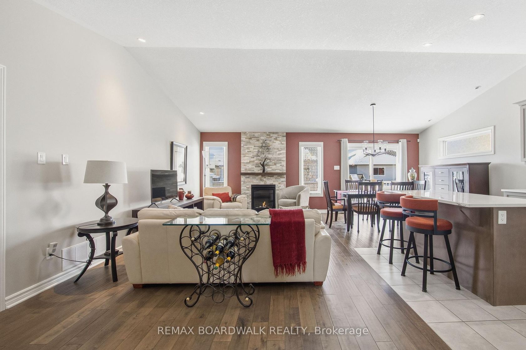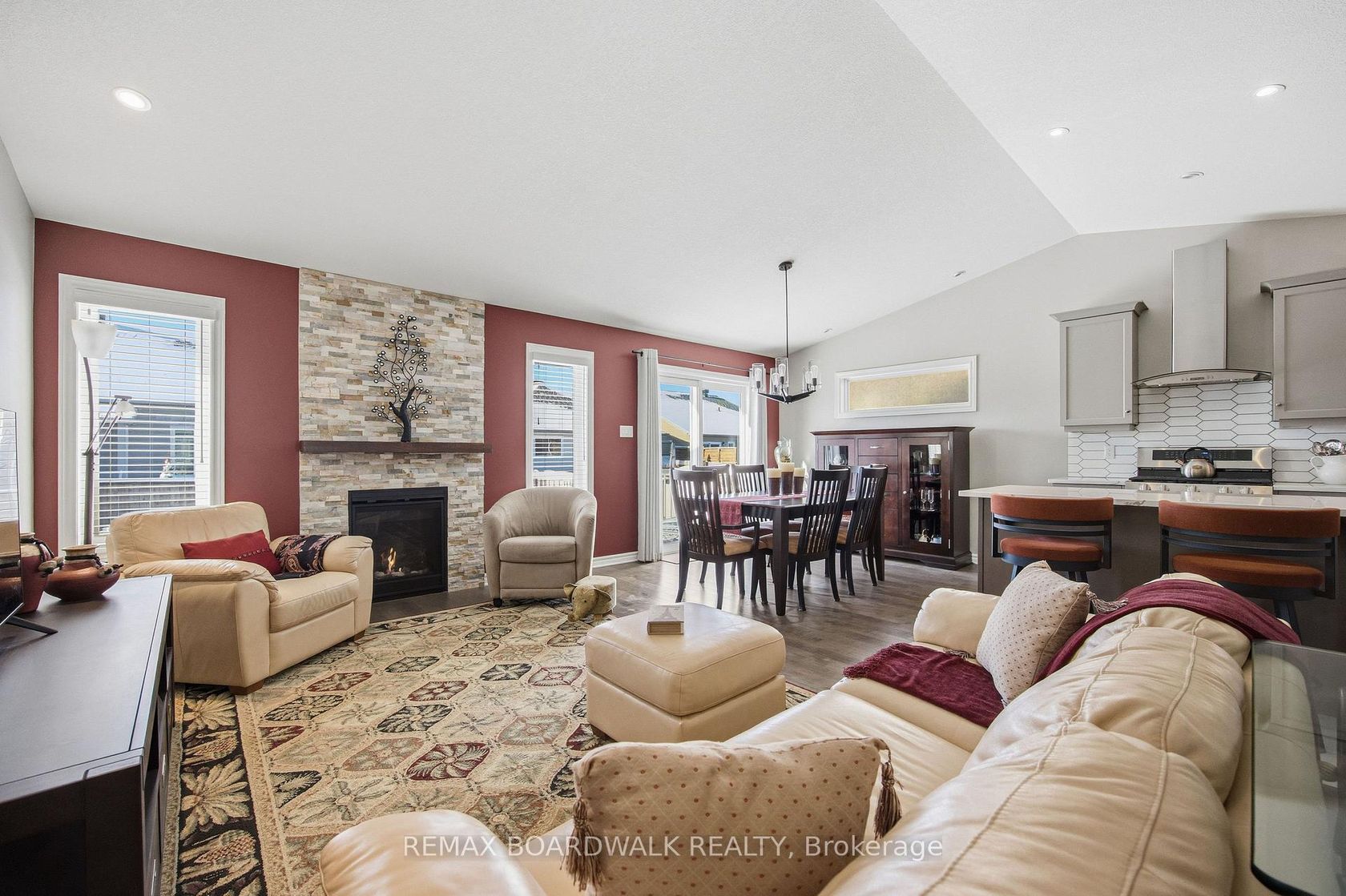 Beautiful bungalow located in Mill Run, one of Almonte's most sought-after communities, where pride of ownership is evident throughout. This thoughtfully designed 2+2 bedroom, 3 full bathroom home offers a bright, open-concept layout ideal for both everyday living and entertaining. Vaulted ceilings create an inviting sense of space in the main living area, complemented by rich hardwood floors and a cozy gas fireplace. The custom kitchen is truly the heart of the home, featuring ample cabinetry, stainless steel appliances, a large island with seating, and an impressive walk-in pantry. The primary suite has been redesigned to provide additional space and comfort, complete with a generous walk-in closet and a well-appointed 4-piece ensuite. A convenient main-level laundry room enhances the home's seamless flow. The finished lower level offers abundant additional living space, including a spacious recreation room with gas fireplace, a full bathroom, and two large bedrooms-perfect for guests, extended family, fitness room or a home office setup. This home also provides exceptional storage and peace of mind with a standby home generator. Step outside to enjoy a zero-maintenance yard and a professionally built shed, ideal for easy living. Situated in a prime location within walking distance to grocery stores, pharmacy, coffee shops and hardware store. Minutes to Almonte and its charming boutiques, cafés, and restaurants. This exceptional home blends comfort, convenience, and community, offering refined, low-maintenance living with vibrant small-town charm.