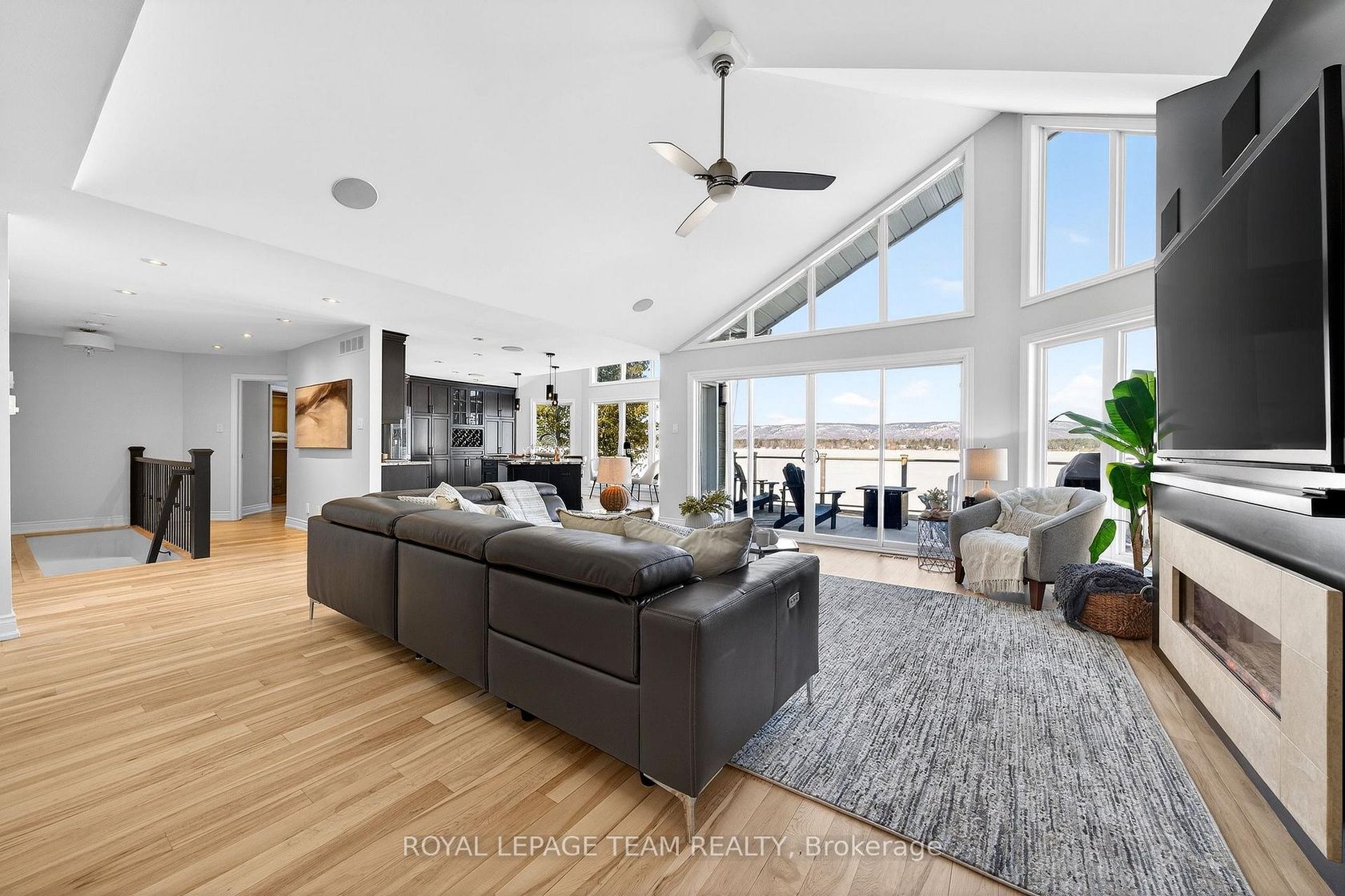 THIS EXCEPTIONAL WATERFRONT RESIDENCE offers 143 ft of prime Ottawa River frontage, set along one of Dunrobin's most coveted streets -just 15 minutes from Kanata and everyday amenities. Perched above the shoreline, this remarkable home captures sweeping, unobstructed views of the river and Gatineau Hills-an ever-changing natural backdrop that defines the experience. This stunning residence was redesigned to emphasize light, scale & connection to it's surroundings. Soaring vaulted ceilings and expansive panoramic windows create a striking architectural presence, framing breathtaking views from nearly every principal room. The main level offers three bedrooms and two bathrooms, centered around an elegant open-concept kitchen, living, and dining area. A large centre island with granite countertops anchors the space-perfect for both entertaining and relaxed everyday living, all set against a spectacular waterfront backdrop. The walk-out lower level is designed for entertaining, featuring two additional bedrooms, oversized windows with river views, a spacious family room & pool table area with French doors that open directly to the patio. From here, step out to the covered hot tub or follow the armourstone stairs down to the water's edge. Enjoy evenings by the fire, sunset cruises from your dock, and effortless days on the water. Thoughtful enhancements include newly refinished maple hardwood floors & hi-efficiency heat pump system, permanent exterior lighting, generous storage, and professionally designed irrigation drawing right from the river. Enjoy true 4-season waterfront living-boating, kayaking & Seadoo adventures in the summer, with snowmobiling and winter activities right from your own property. With approximately 4,045 sq. ft. and an impressive 180 ft dock system, this is resort-style living every day-where you can relax, unwind, and take in exceptional views, all just minutes from the city. Open House Sat, April 4th from 2-4pm. Offers to be reviewed April 8th.